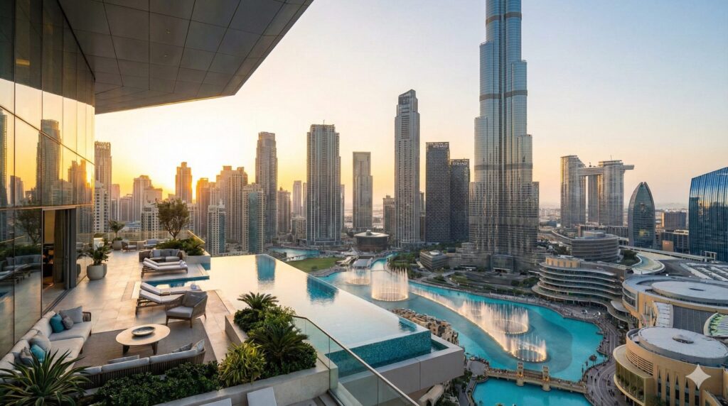 近未来的な高層ビルが立ち並ぶドバイの都市景観。世界中の投資家を惹きつける要因となっています。
