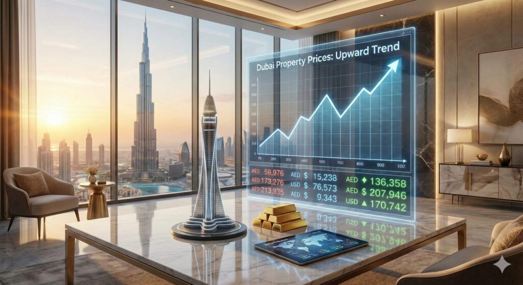 近年、ドバイの不動産価格上昇傾向にあり、全体の平均平米単価は2024年時点で約18,000AED/㎡(約75〜80万円)と報告されています。